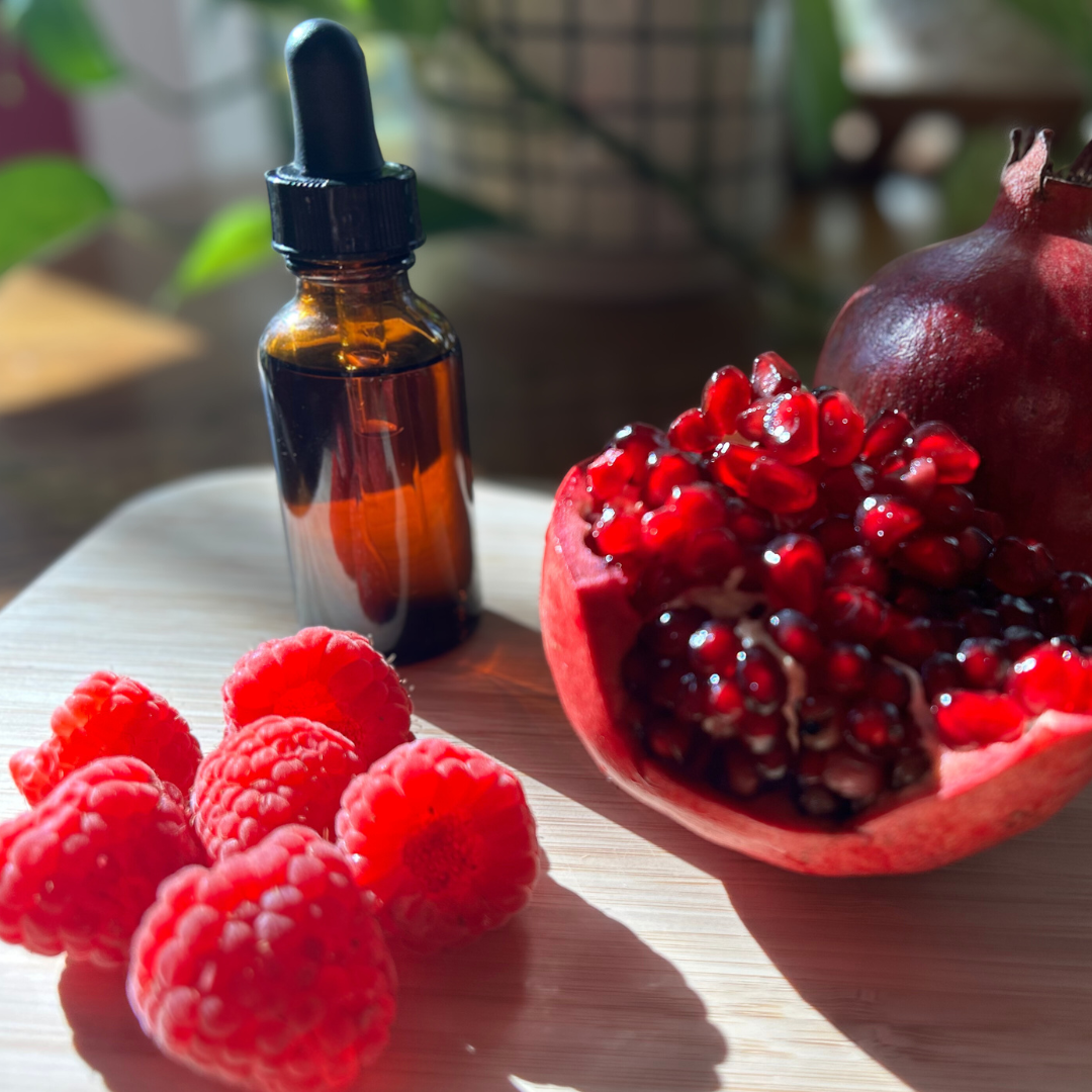 Ingredients: Organic jojoba oil, organic raspberry seed oil, organic rosehip seed oil, organic sea buckthorn oil, organic pomegranate seed oil, and non-GMO vitamin E.